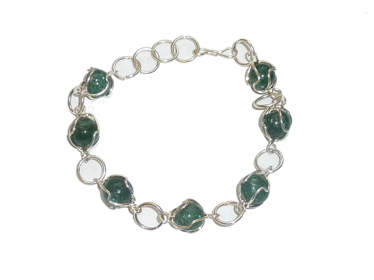 Aventurine Bead in Cage, Silver Plated Bracelet. Finished with a Silver Plated “S” Clasp and Jump Ring, 19cm (7.5″) . Pack of 3 Bracelets.