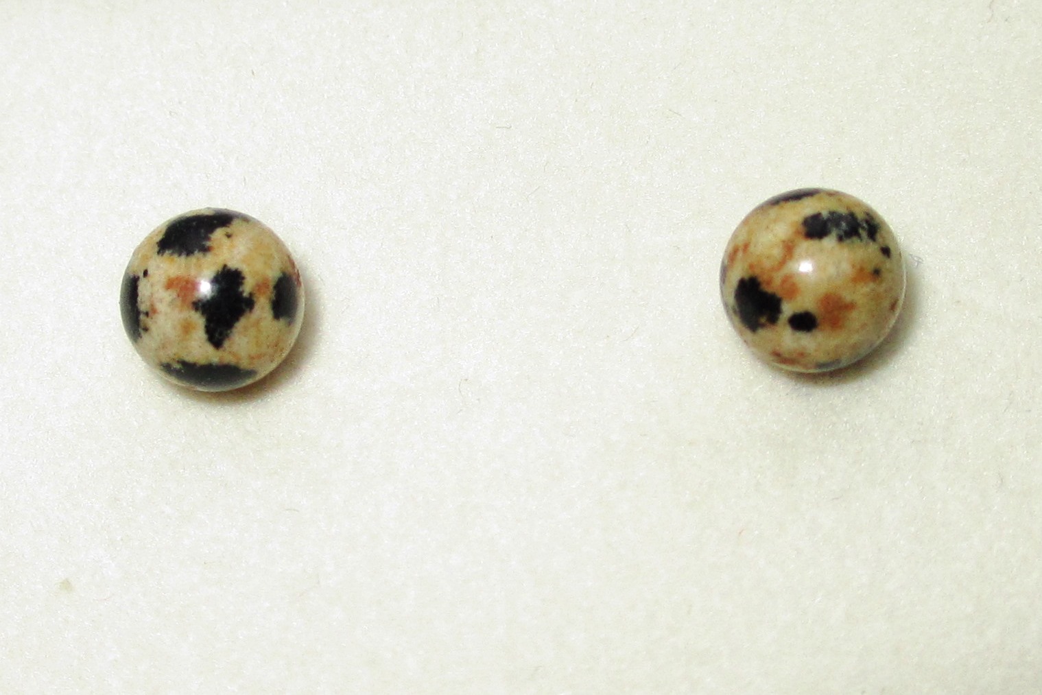6mm Round Dalmatian Stone Bead Studs on Sterling Silver Posts, with Sterling Silver Scrolls.