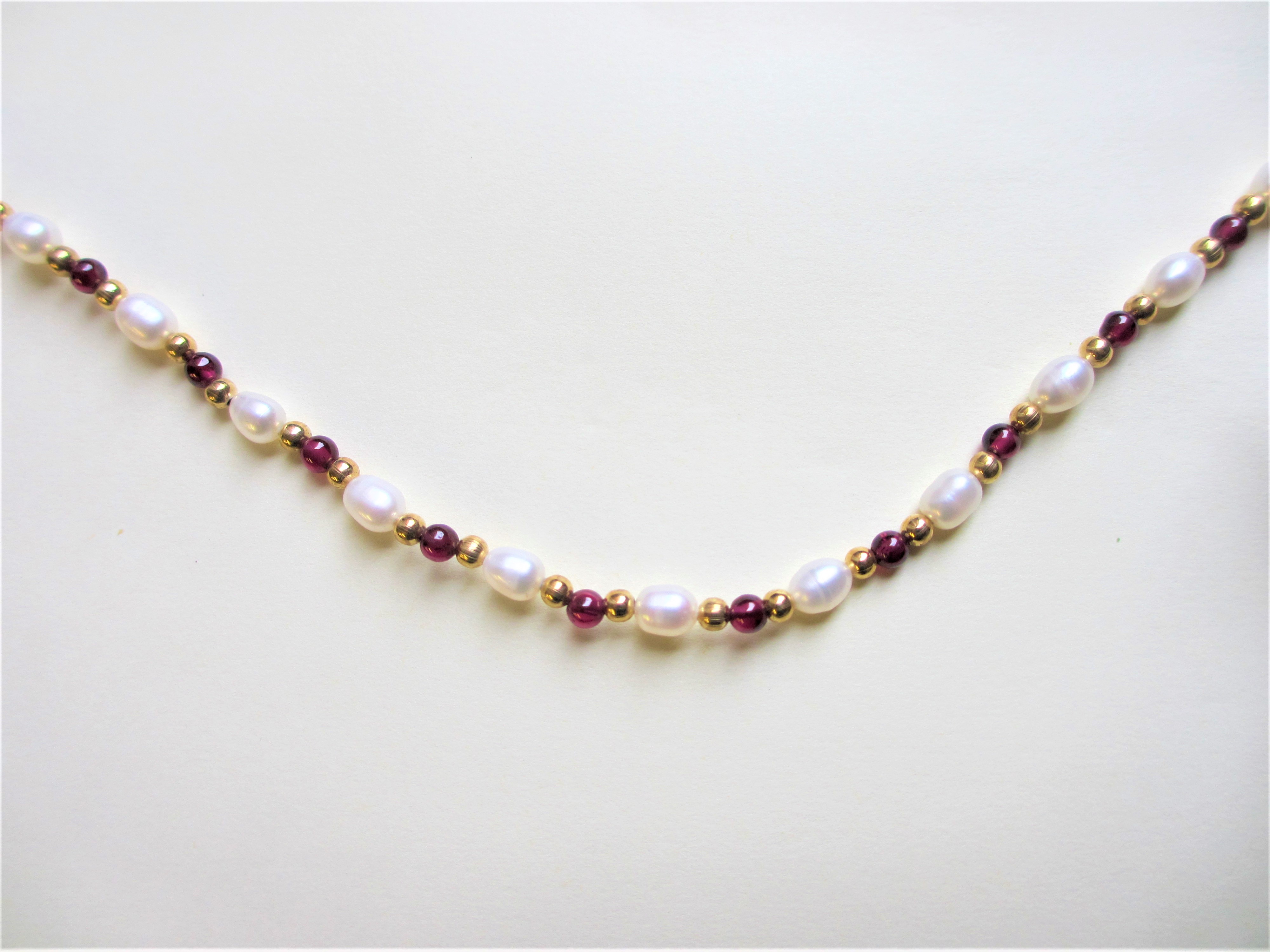 Long Drill Freshwater Pearls with 4mm Gemstone Beads Interspersed with 3mm Gold Plated Bead Necklace. Finished with a Gold Plated Trigger Catch and Jump Ring, 45cm (18″) . Pack of 3 of Same Stone Type.