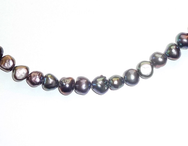 Freshwater Pearls, 6-7mm Peacock, Side Drill Necklace. Finished with a choice of Silver Plated or Gold Plated Bolt Ring and Jump Ring, 42cm (17″) or Loose-Strung, 40cm (16″).