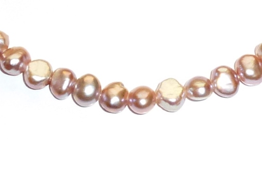 Freshwater Pearls, 7-7.5mm Pink, Side Drill Necklace. Finished with a choice of Silver Plated or Gold Plated Bolt Ring and Jump Ring, 42cm (17″) or Loose-Strung, 40cm (16″).