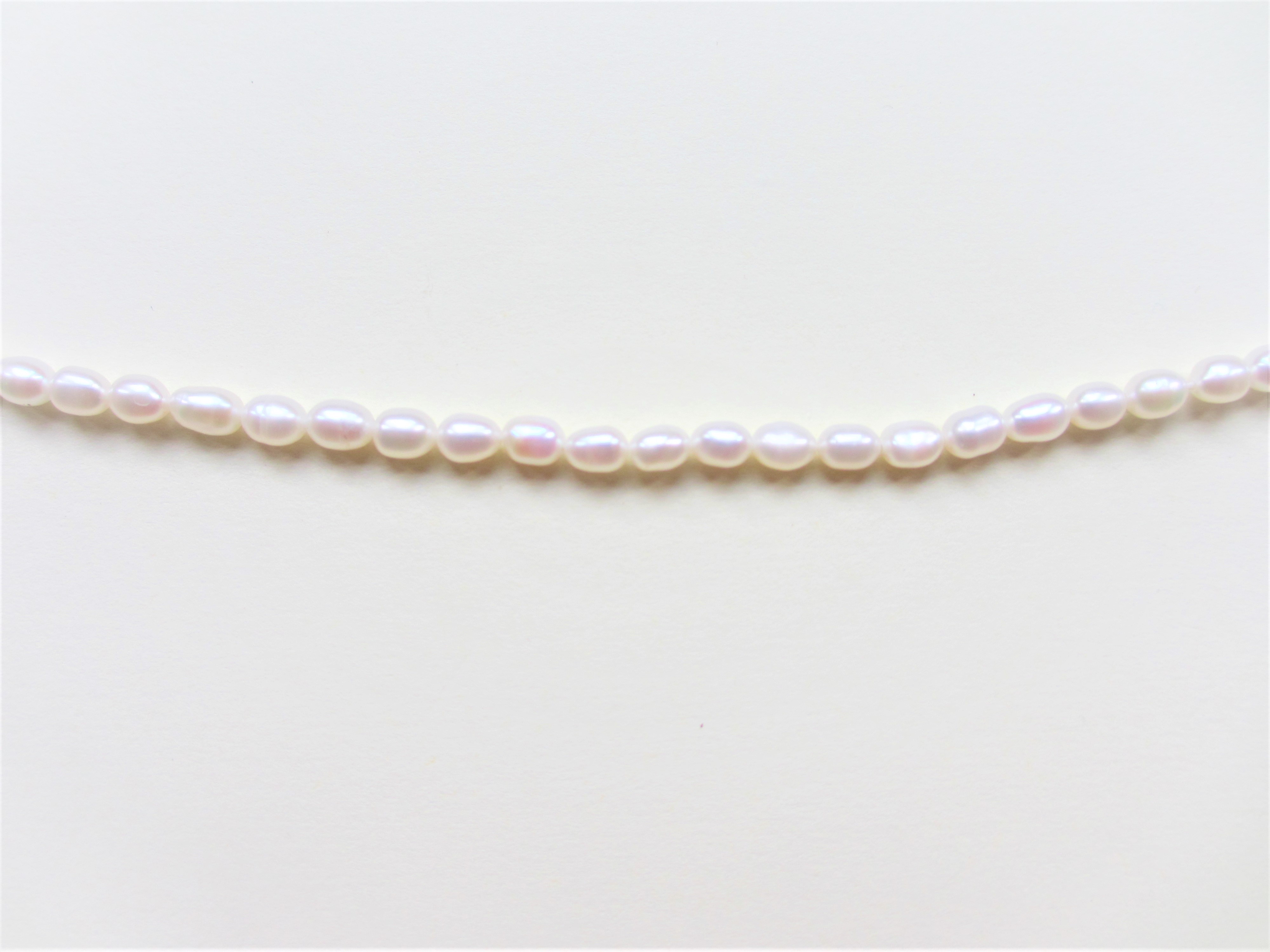 Freshwater Pearls, ‘A’ grade, 4-4.5mm White Long Drill, Necklace. Finished with choice of Silver Plated or Gold Plated Bolt Ring and Jump Ring, 42cm (17″) or Loose-Strung, 40cm (16″). Pack of 2 Necklaces.