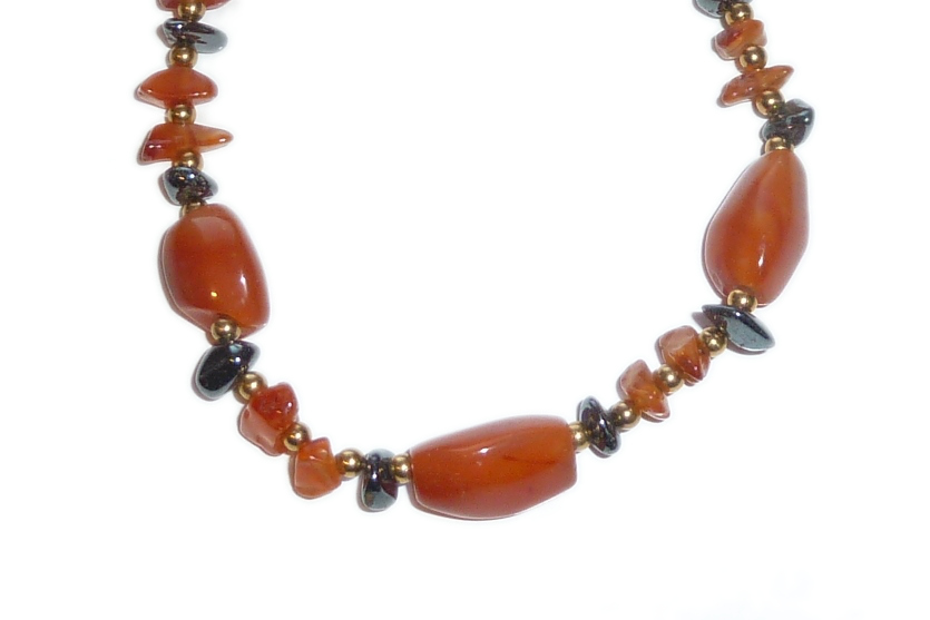 Carnelian Tri Corners, with Carnelian and Hematite Chips, Gold Plated Beads, Trigger Clasp and Jump Ring, 60cm (24″). Pack of 2 Necklaces.