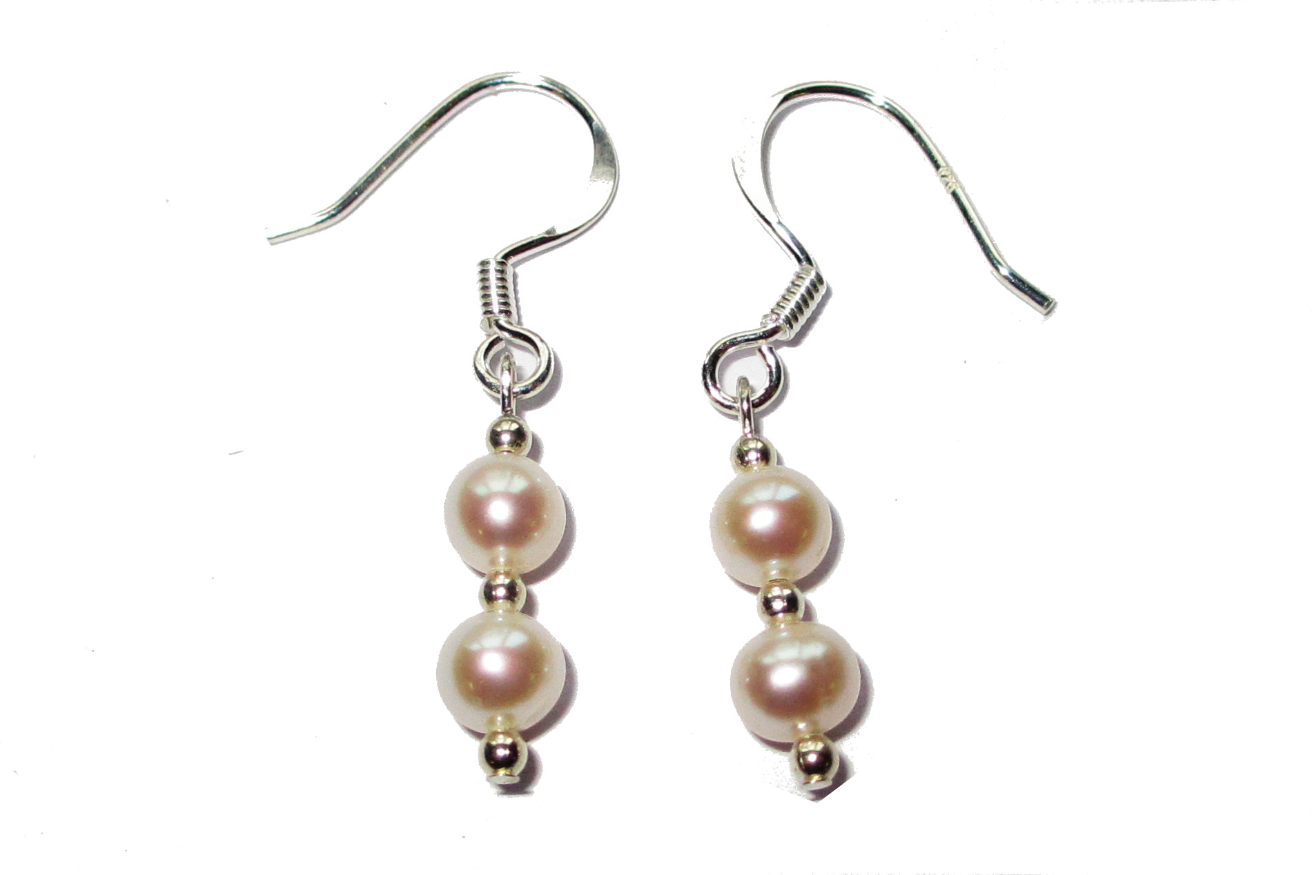 White 4.5-5mm, Double Pearl Drop Potato Freshwater Pearl Earrings on Sterling Silver Fittings, with Sterling Silver Fish Hook Wires.