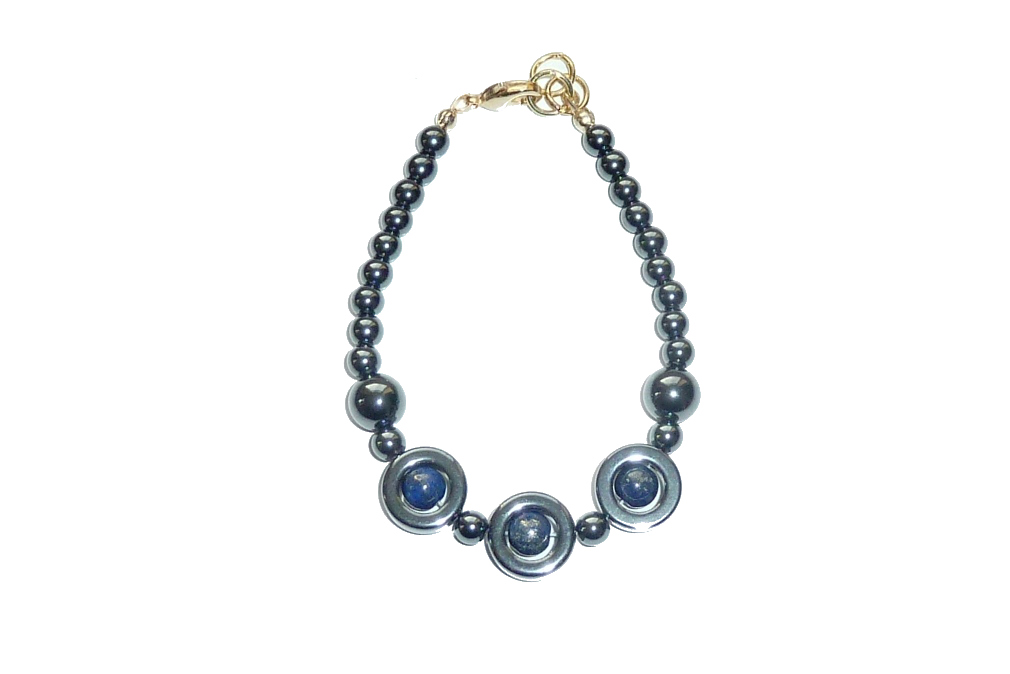 Hematite wheels & 6mm Lapis bead bracelet,19cm (7.5″) with a gold plated trigger clasp.Pack of 2.