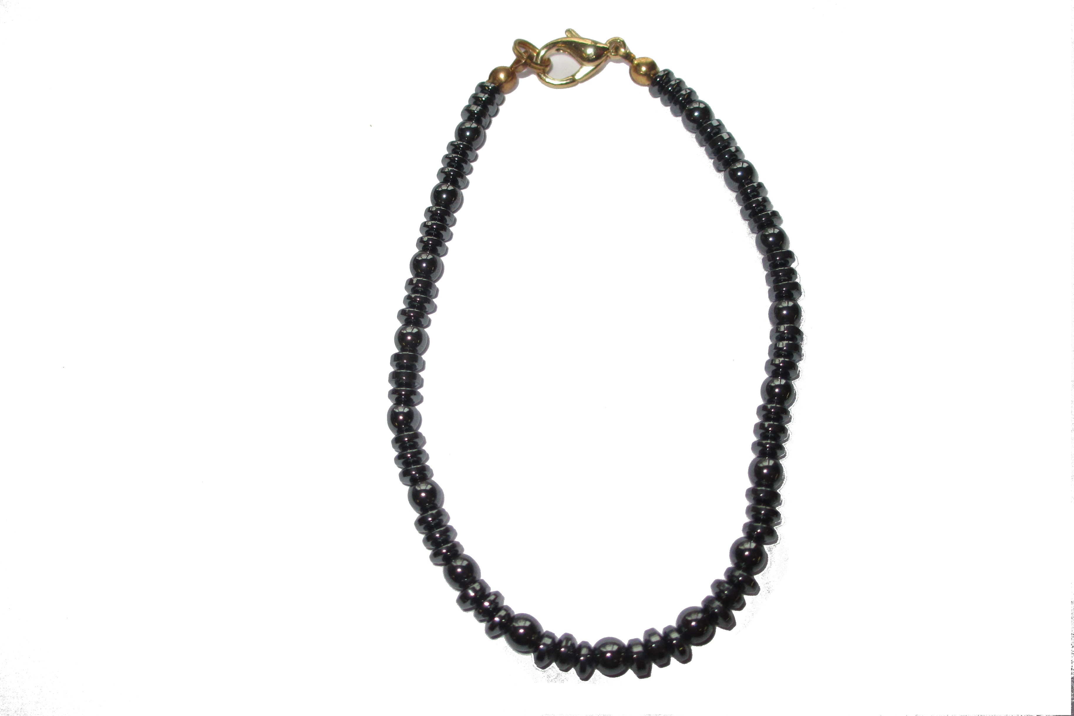 Hematite Button & 4mm Round Bead Bracelet. Finished with a Gold Plated Trigger Clasp and Jump Ring, 19cm (7.5″). Pack of 3 Bracelets.