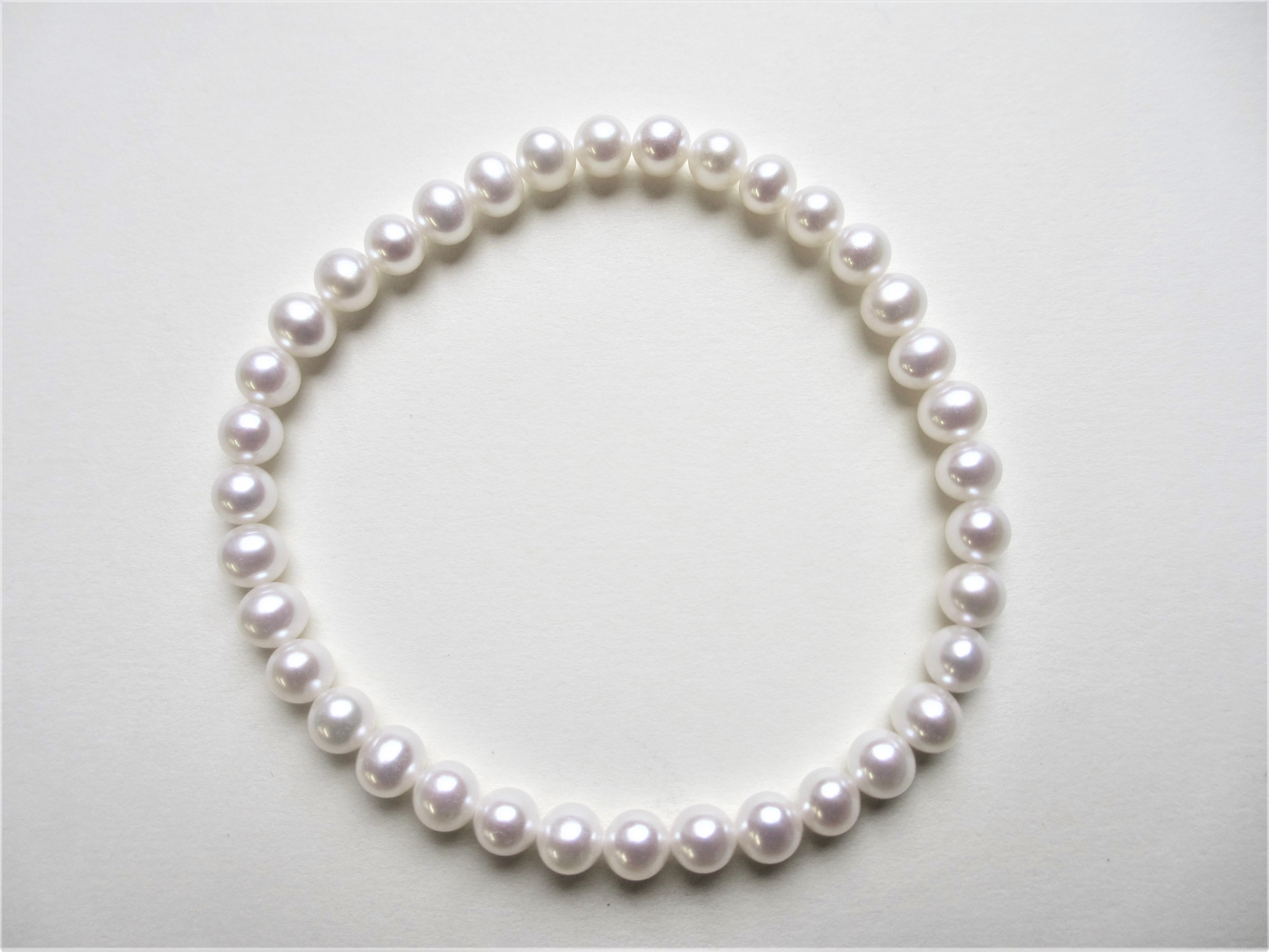 White, 5-6mm Potato Shaped, Freshwater Pearl Elastic Bracelet, 18cm (7″). Pack of 2 Bracelets.