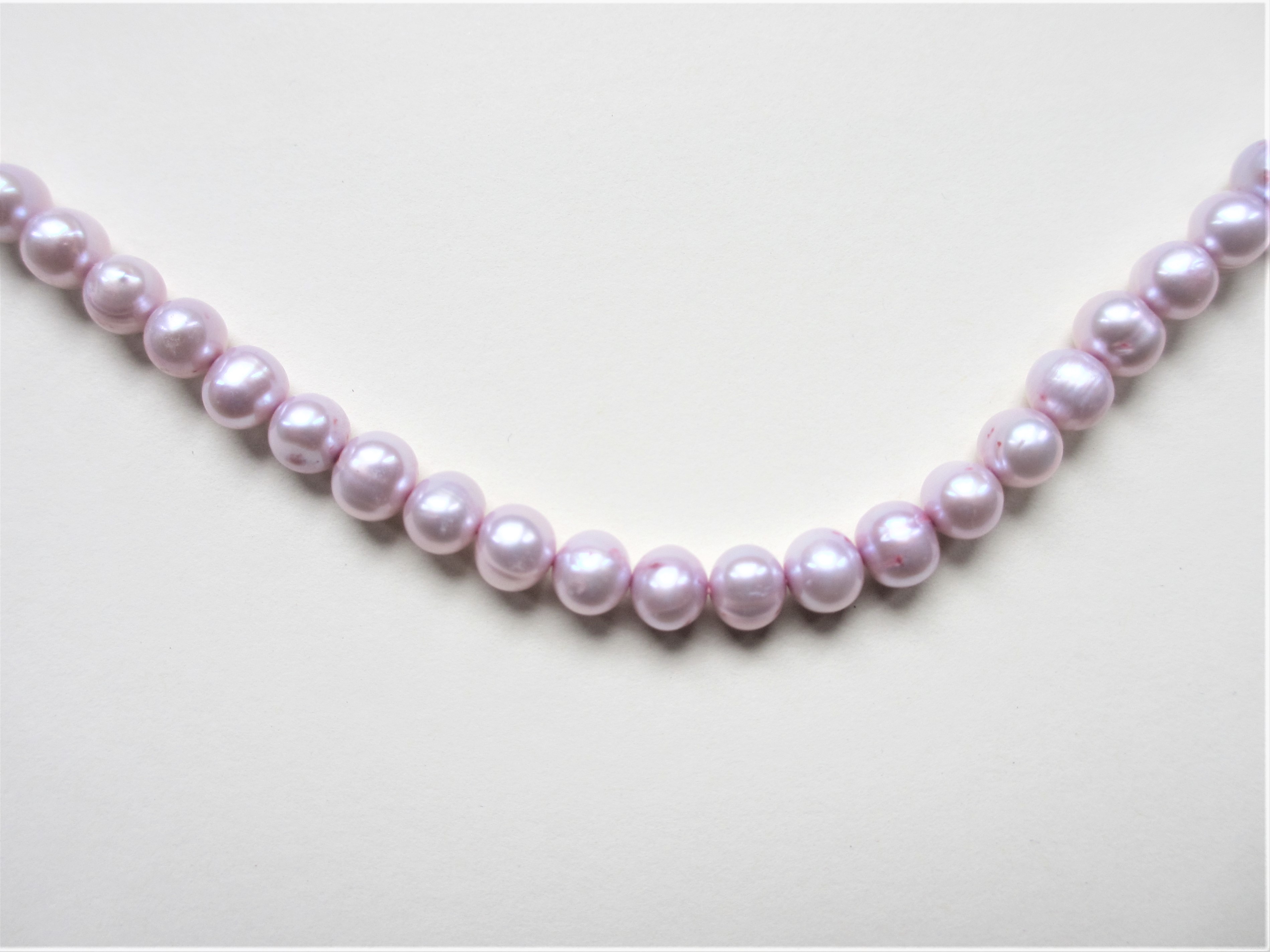 Freshwater Pearls, 5.5-6mm Lilac, Potato Shaped Necklace. Finished with a Choice of Silver Plated or Gold Plated Bolt Ring and Jump Ring, 42cm (17″) or Loose Strung, 40cm (16″) .