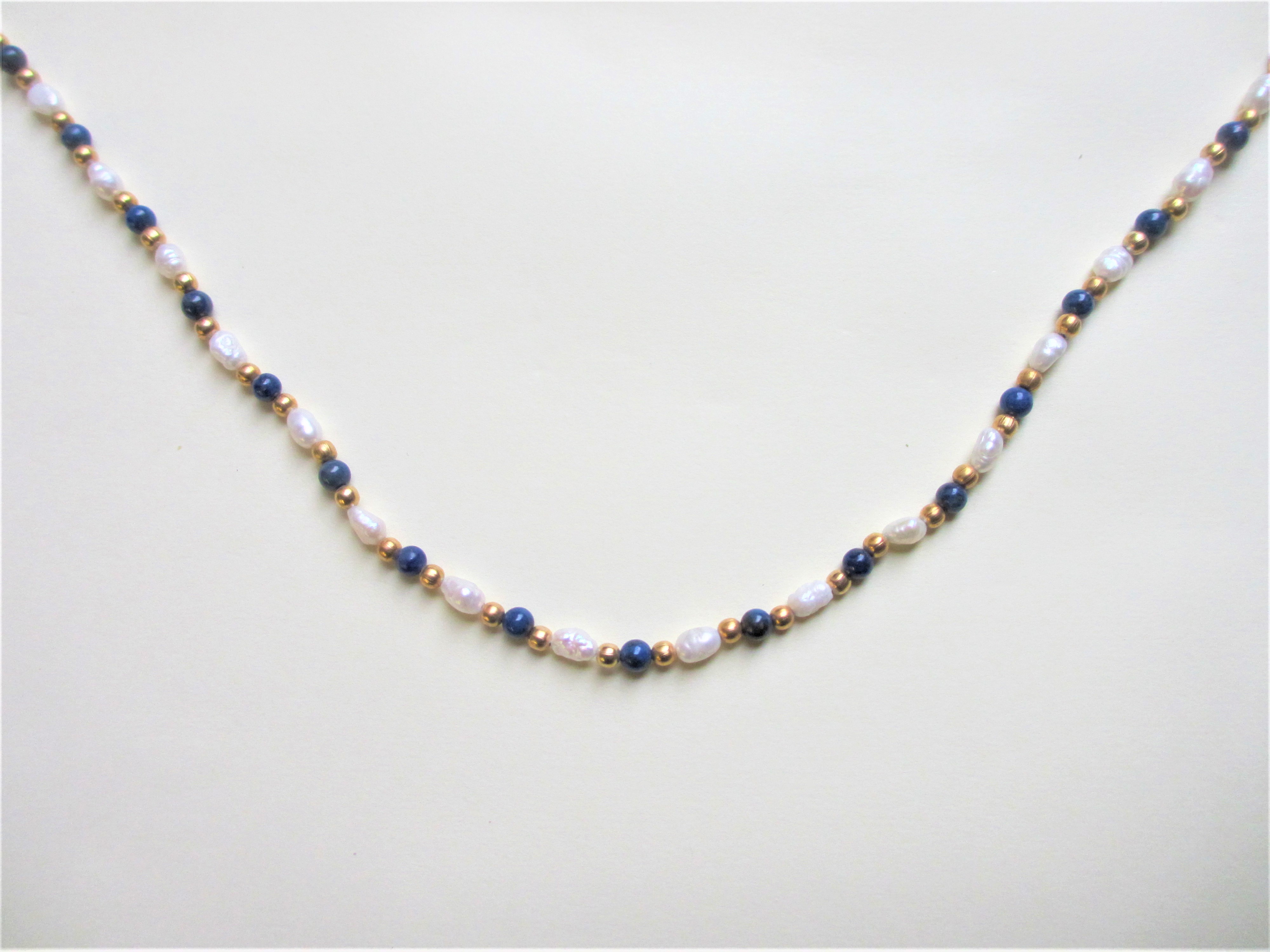 Freshwater Pearls with 4mm Gemstone Beads interspersed with 3mm Gold Plated Beads, 90cm (36″), Continous. Pack of 2 of same stone type.