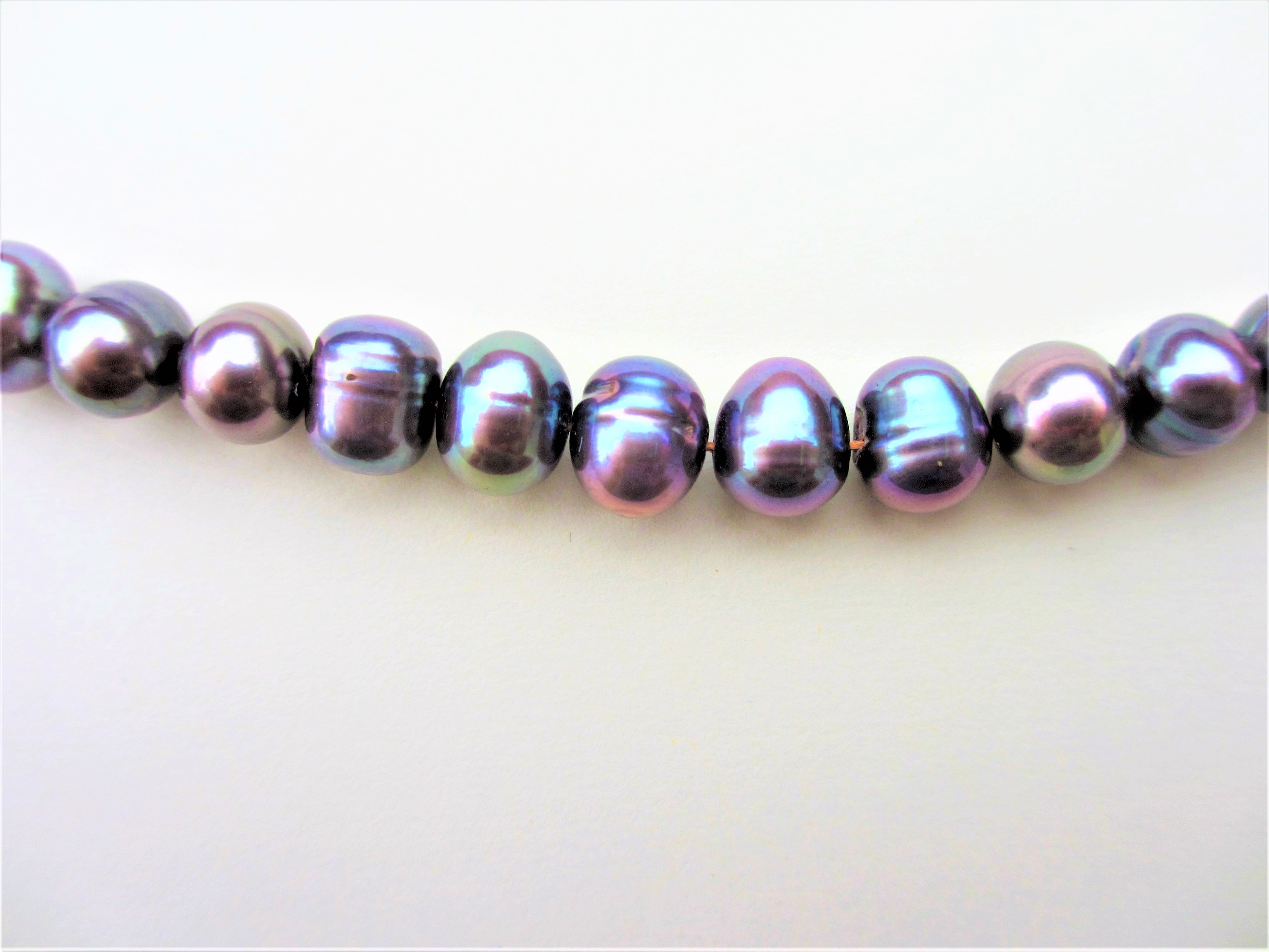 Freshwater Pearls 7-7.5 mm Peacock, Potato Shaped Necklace. Finished with a Choice of Silver Plated or Gold Plated Bolt Ring and Jump Ring, 42cm (17″) or Loose -Strung, 40cm (16″).