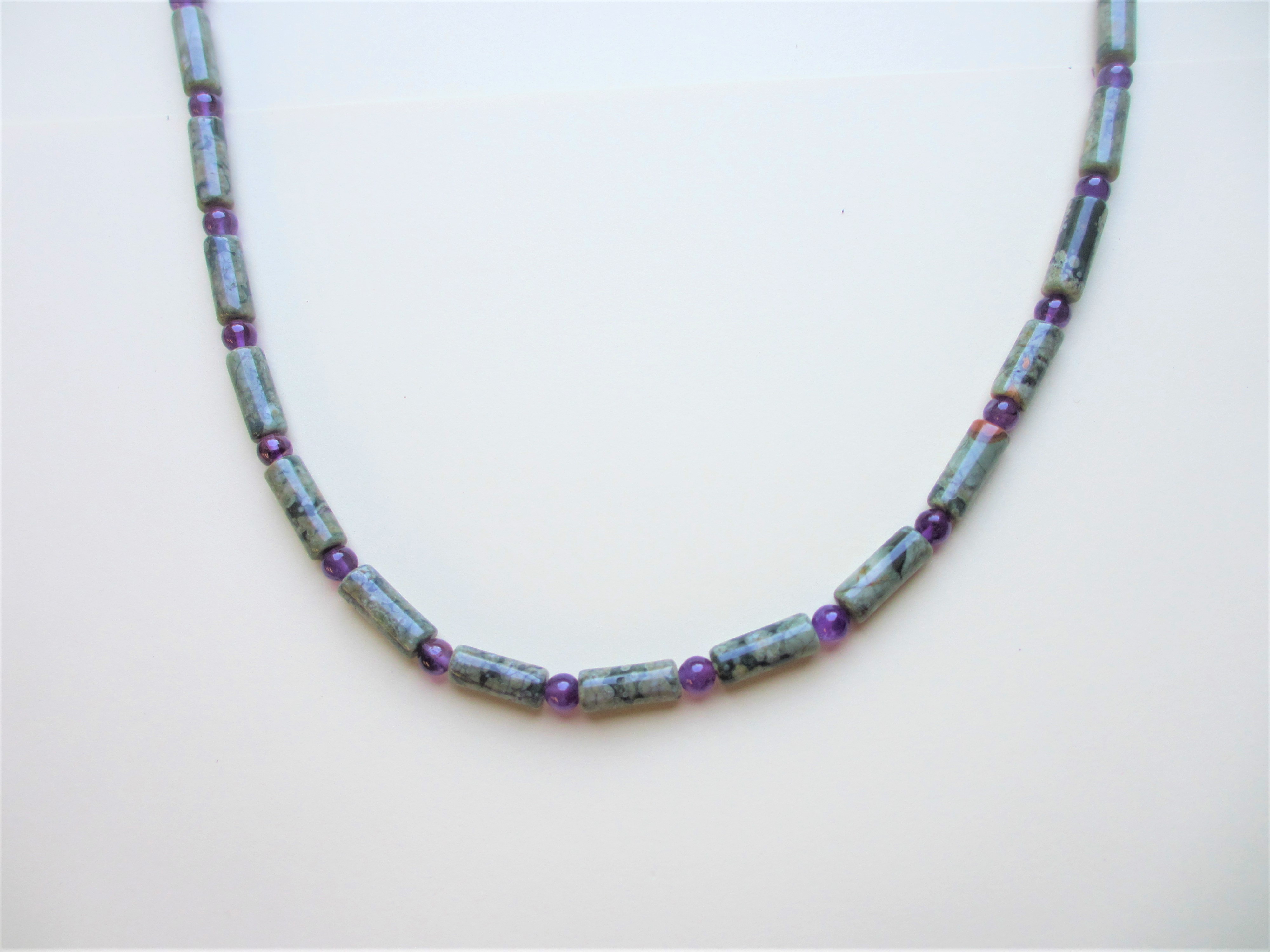 Green Ryalite Tubes & Amethyst 6mm Beads, and Finished with a Gold Plated Trigger Clasp and Jump Ring 45cm(18″).
