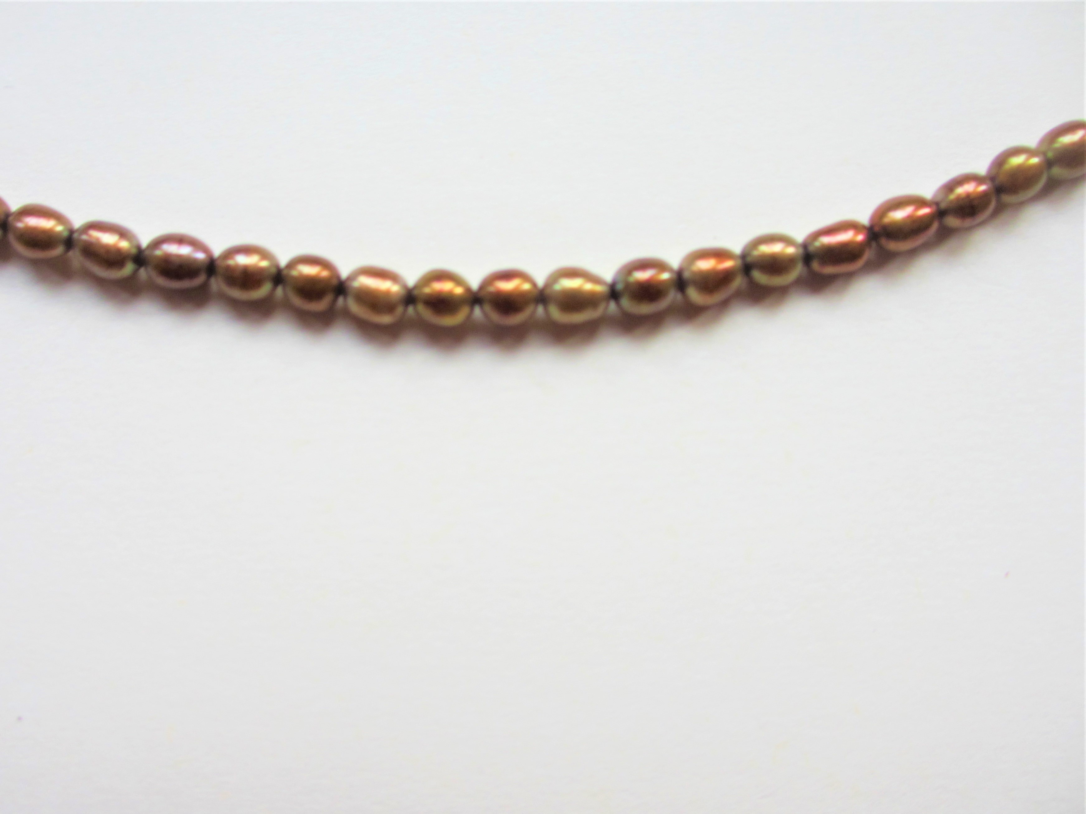 Freshwater Pearls, 4-4.5mm Bronze Long Drill Necklace. Finished with a Choice of Silver Plated or Gold Plated Bolt Ring and Jump Ring, 42cm (17″) or Loose Strung, 40cm (16″). Pack of 2 Necklaces.