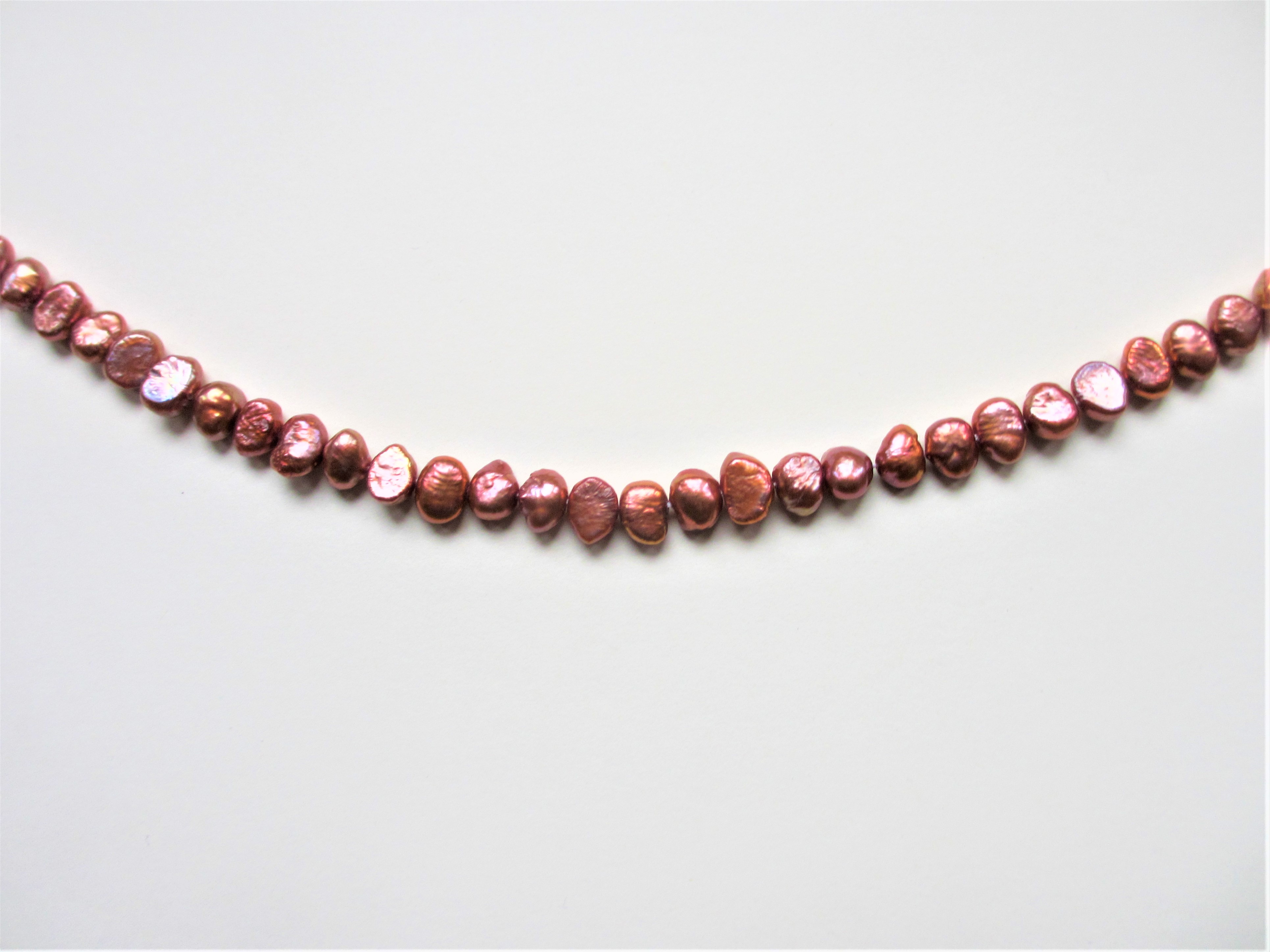 Freshwater Pearls, 5-6mm Bronze, Side Drill Necklace. Finished with a Choice of Silver Plated or Gold Plated Bolt Ring and Jump Ring, 42cm (17″) or Loose-Strung, 40cm (16″). Pack of 2 Necklaces.
