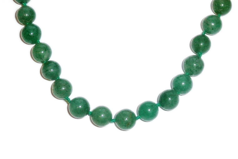 Dark Green Aventurine 8mm Bead, Knotted Necklace, continuous, 70cm (28″).