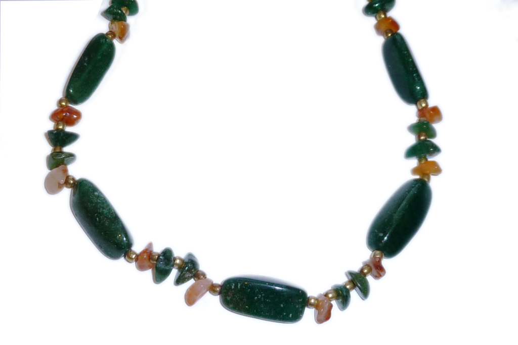 Aventurine Tri Corners with Carnelian and Aventurine Chips, Gold Plated Beads, Trigger Clasp and Jump Ring 60cm (24″). Pack of 2 Necklaces.